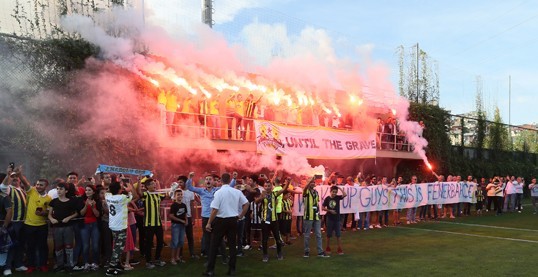 Başkanımız Ali Koç’a, Yönetim Kurulu Üyelerimize, teknik heyete ve futbolcularımıza sevgi gösterilerinde bulunan taraftarlarımız meşaleler yaktı ve tezahüratlar eşliğinde desteklerini gösterdi. Takım kaptanı Volkan Demirel’e baklava ve çiçek takdim eden taraftarlarımızla Başkanımız Ali Koç, Başkanvekilimiz Semih Özsoy ve Yönetim Kurulu Üyemiz Selahattin Baki yakından ilgilendi.